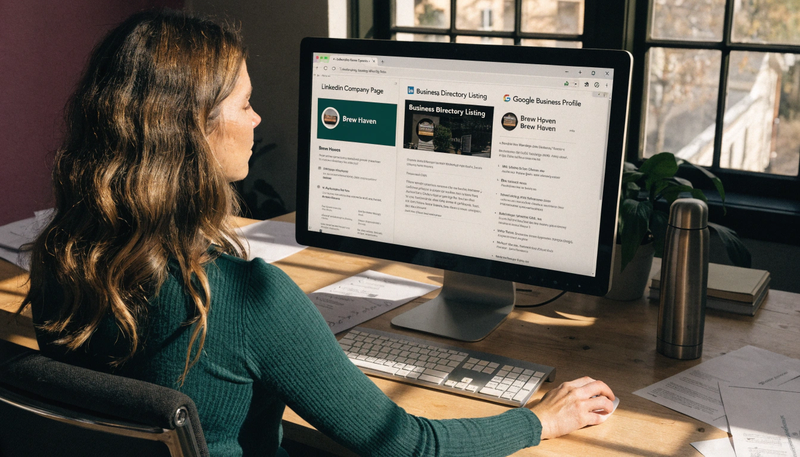 - Verify all external profiles (LinkedIn, Crunchbase) use identical brand name, description, and address