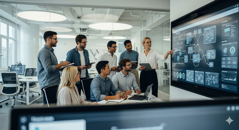 Expect 6-9 months for full implementation from initial audit through mature operational state. However, you can see measurable results from process improvements in the first 90 days with a focused pilot. The phased approach (pilot → expand → optimize) reduces risk and enables learning along the way.