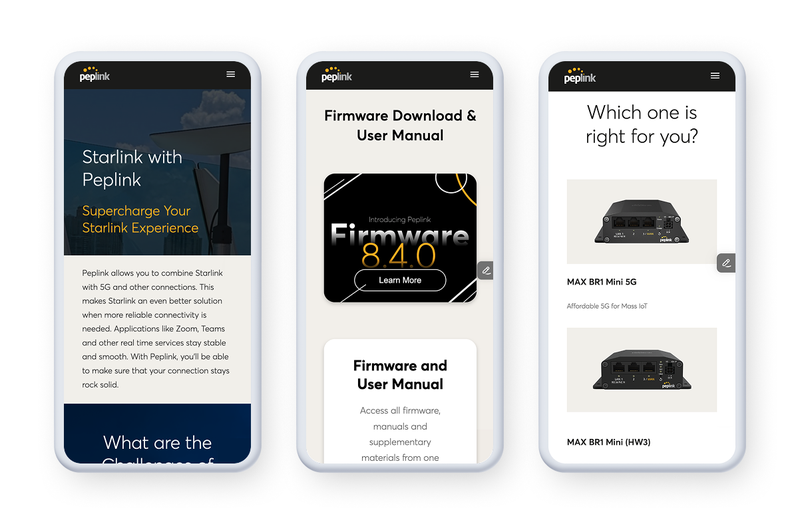 We designed and implemented a headless CMS architecture that transformed their digital capabilities. The new platform allows Peplink to manage their comprehensive product catalog with greater efficiency. Technical specifications, product updates, and marketing content can now be deployed globally with the speed and reliability their customers expect.