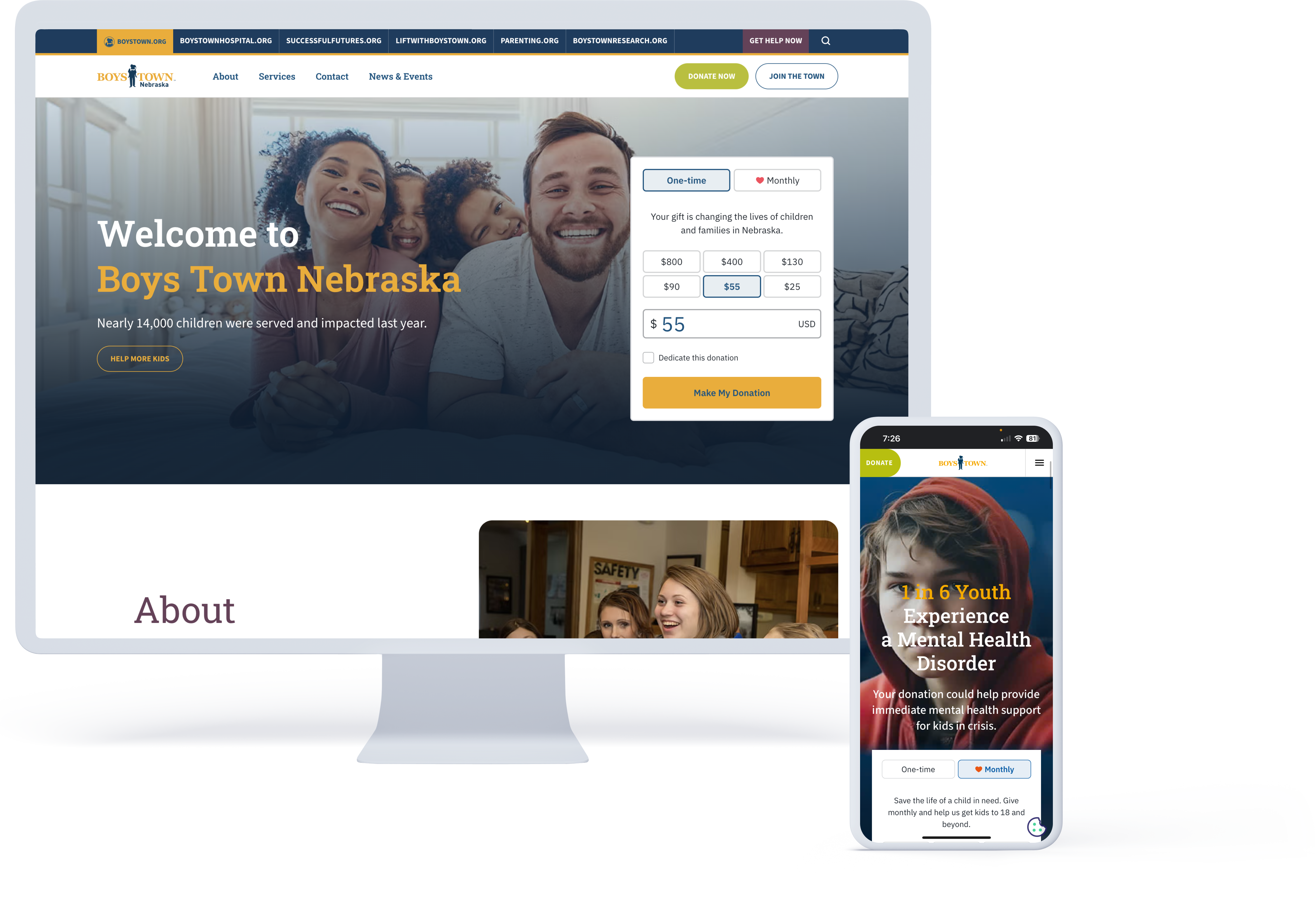 Boys Town, one of America's most trusted children's charities with over 100 years of service providing care, counseling, and support to children and families nationwide, partnered with Dotfusion to create a cohesive digital ecosystem that unifies their main organization site with 6 specialized service portals and 8 regional locations.