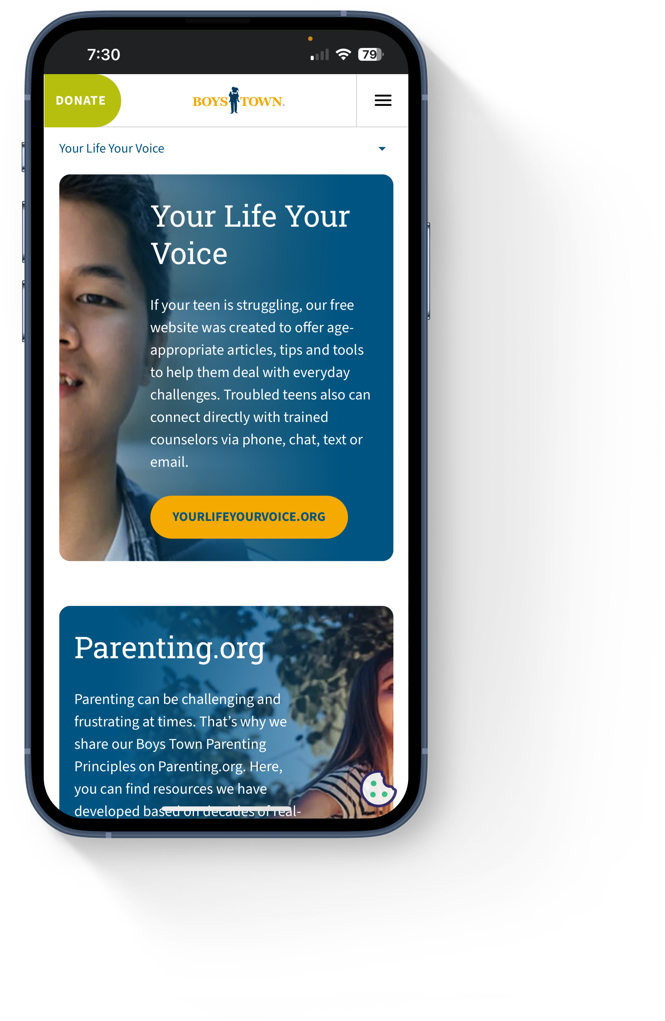 Our strategy focused on solving the critical UX challenge of creating a cohesive navigation experience across 15+ digital properties. We developed a unified design system that could scale across the main organization site, 6 specialized service portals, and 8 regional microsites while maintaining clear wayfinding for users. The navigation architecture needed to communicate where users are within the broader Boys Town ecosystem while providing intuitive pathways to other relevant services, whether that's connecting hospital visitors to mental health resources or guiding regional site visitors to specialized programs. By implementing Agility CMS as the foundation, we ensured the entire ecosystem could share components, maintain brand consistency, and allow the Boys Town team to manage content efficiently across all properties. This combination of strategic information architecture and scalable technology created a digital ecosystem that serves families comprehensively while reducing operational complexity.