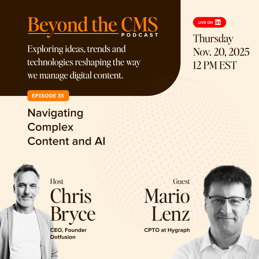 Whether you're a CMO navigating content sprawl, a digital leader modernizing your stack, or an enterprise team exploring AI-enabled workflows, this episode offers clear, practical insight into the future of complex content operations.